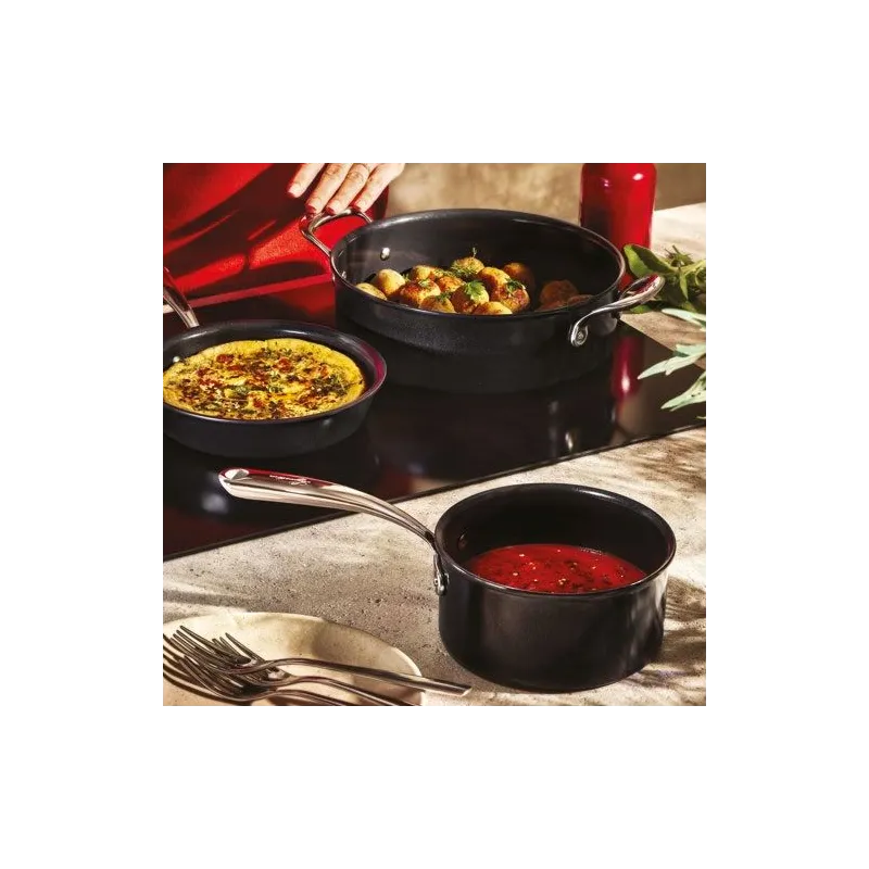 Casserole 16 cm - Desideria - Avec Desideria de Lagostina, découvrez une cuisson hautes performances et un impact environnemental réduit ! - Une gamme d'ustensiles de cuisson antiadhésifs au design élégant. innovant et très résistant - Corps en aluminium très épais 100 % recyclé - Technologie Thermo-Fusion intégrale avec une base induction large et épaisse qui assure une cuisson plus efficace et une diffusion rapide et uniforme de la chaleur - Poignée rivetée en acier inoxydable - Revêtement antiadhésif céramique Inoceram® : revêtement en céramique ultime offrant des propriétés antiadhésives durables et une glisse exceptionnelle pour une cuisson saine et pauvre en matière grasse, ainsi qu'un nettoyage facile - Polyvalente totale : compatible four jusqu'à 250°C pour des recettes savoureuses en deux étapes - Capacité 1,6 L - Tous feux dont induction - Garantie 5 ans.