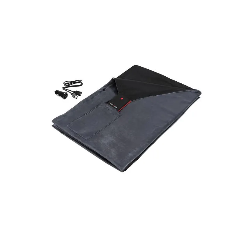 Plaid nomade chauffant sur batterie - La solution pour ne plus avoir froid lors de vos déplacements ou lorsque vous êtes tranquillement installés chez vous - Tissu microfibre 120 x 120 cm, doux et ultra-léger avec 1 face imperméable - Zone de chauffe 40 x 40 cm, conçu pour bien couvrir le haut du dos - 3 niveaux de chauffe avec voyant tricolore - Bouton pression pour un bon maintien sur les épaules - Autonomie de 3 à 5 heures selon le niveau de chauffe choisi - Poche de rangement avec fermeture pour la batterie - Câble USB 2 mètres pour le rechargement (capacité de 10 000 mAh) - Livré également avec un chargeur voiture - La batterie est également utilisable comme batterie de secours pour recharger son téléphone portable, sa liseuse... - Lavable en machine à 30°C - Coloris gris noir - Garantie 2 ans.