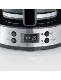 Cafetière filtre TypeSwitch programmable 10 tasses - De manipulation très simple, elle vous permettra de réaliser un très bon café selon votre envie ! - Elle dispose de la fonction AromaSwitch, pour que vous puissiez choisir la force de votre café (doux ou normal) - Arrêt automatique au bout de 40 minutes après la fin du cycle de percolation - Fonction spéciale de détartrage : L'indicateur s'affiche automatiquement sur l'écran led au bout de 100 utilisations, Appuyer pendant 3 secondes sur les touches Prog et Marche-arrêt pour lancer la fonction - Porte-filtre pivotant 1x4 avec système anti-goutte - Niveau d'eau visible des 2 côtés - Compartiment range-cordon - Interrupteur marche / arrêt avec voyant lumineux - Coloris Inox brossé et Noir - Puissance 1000 W - Garantie 2 ans.