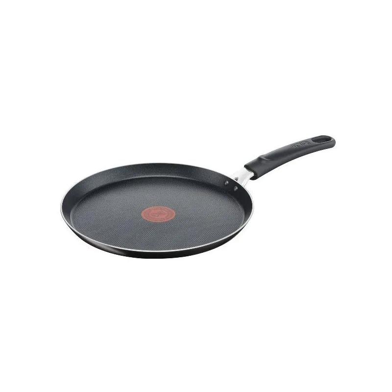 Crêpière 28 cm - Easy Cook & Clean - Grâce à sa grande surface de cuisson et ses bords bas, vous pourrez réaliser de délicieuses crêpes dorées et faciles à faire sauter ! - La bonne cuisine prend un peu de temps mais le nettoyage, lui, ne devrait pas en prendre ! - Cette gamme a été conçue pour vous faciliter la vie au quotidien grâce au revêtement antiadhésif intérieur et extérieur qui vous garantit un nettoyage 100 % facile ! - En aluminium : résultats de cuisson parfaits - La base de diffusion assure une répartition optimale de la chaleur pour des résultats homogènes - Revêtement antiadhésif intérieur Titanium haute qualité, durable et résistant grâce à une structure ultra-renforcée et un revêtement protecteur renforcé de particules de titane - Thermo-Signal® : l'allié des cuissons réussies en vous permettant une maîtrise parfaite de la température - Facile d'utilisation, le Thermo-Signal® devient de couleur uniforme lorsque la poêle a atteint la température optimale de saisie des aliments et vous indique ainsi quand démarrer votre cuisson, pour des crêpes réussies à coup sûr ! - Poignée avec une zone texturée anti-glisse offrant une ergonomie améliorée et une prise en main confortable et sûre - Tous feux sauf induction - Fabriqué en France - Tefal fabrique ses poêles et casseroles à Rumilly, en Haute-Savoie.