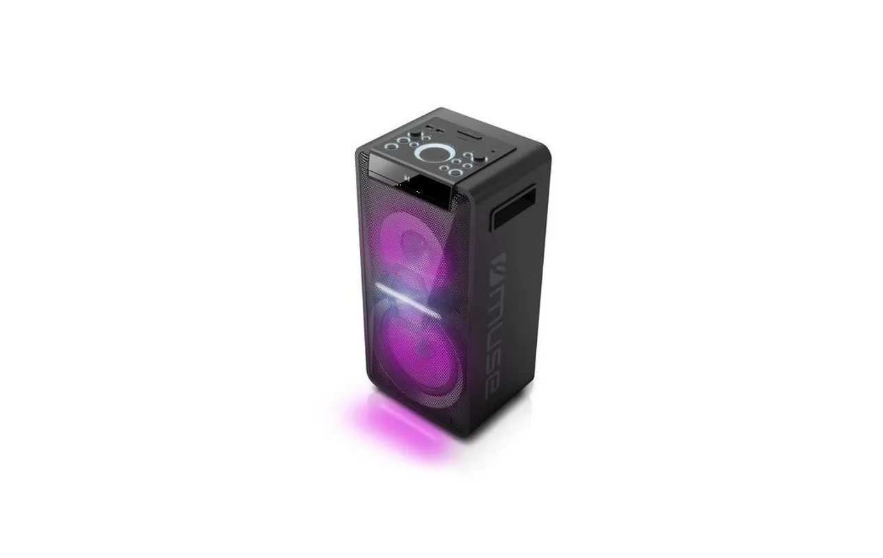 Enceinte Party Box Hi-Power - Lumière d'ambiance multicolore et effet stroboscope - Affichage LED blanc - Lecteur CD compatible MP3 - Tiroir motorisé - Port USB 2.0 permettant la lecture de MP3 et le chragement USB - Bluetooth V 4.1 avec fonction de couplage automatique NFC - Touches de contrôle éclairées - Batterie lithium intégrée - Poignée télescopique - Berceau intégré pour tablette ou smartphone - Coffrage bois - Livré avec un microphone filaire et une télécommande.
