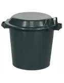 Coloris noir, couvercle verrouillable. Deux poignées sur le corps. Dimensions H54xØ55cm.