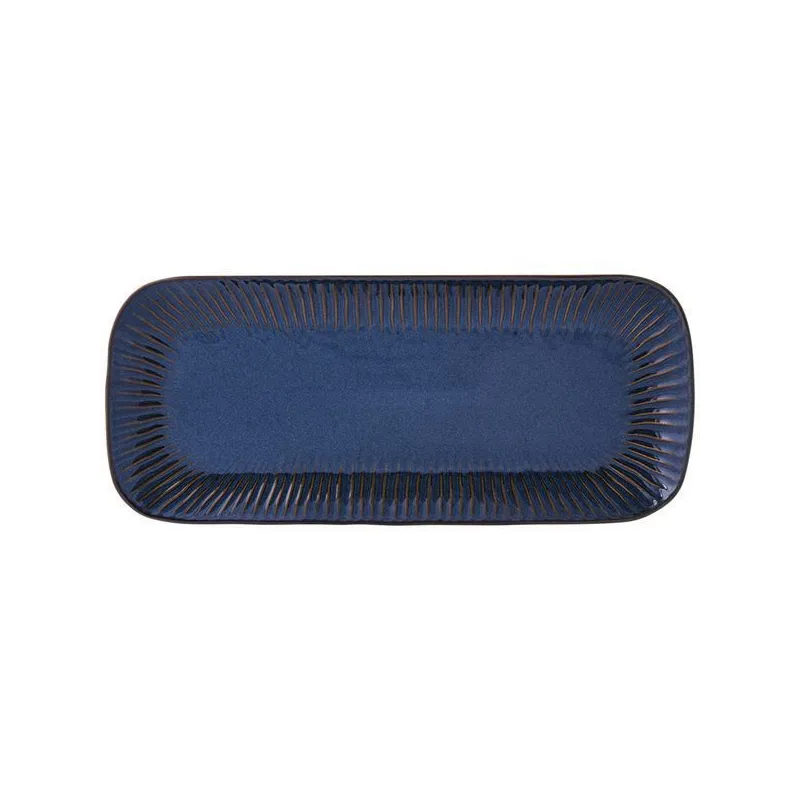 Plat à cake 36 x 16 cm Bleu - Gallery - So chic ! - Dites "Au revoir" à la vaisselle ennuyeuse et dites "Bonjour" à la vaisselle contemporaine et soignée avec cette collection qui vous permet de mixer et d'associer 3 coloris différents ! - En porcelaine à base de glaise réactive - Formes irrégulières - Les stries stylisées en bordure mettent en valeur tous vos plats ! - Pratique : compatible micro-ondes - Nettoyage facile : passe au lave-vaisselle.