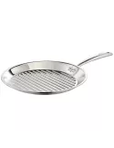 Poêle grill 28 cm - Accademia Lagofusion - Avec la poêle grill en acier inoxydable 18/10 Accademia Lagofusion de Lagostina, la diffusion de la chaleur est parfaite et homogène, du fond jusqu'en haut des parois grâce à la cuve - Le résultat est une cuisson uniforme sans points de surchauffe, pour des viandes parfaitement grillées à tous les endroits - Fabriquée en acier inoxydable 18/10 haut de gamme et compatible tous feux, y compris induction, Accademia Lagofusion est aussi élégante que pratique, avec un intérieur satiné moderne et un polissage effet miroir raffiné à l'extérieur, pour faciliter le nettoyage - Avec son fond texturé, c'est la poêle idéale pour saisir parfaitement les viandes et les légumes et cuire avec moins de matière grasse - Passe au four (jusqu'à 250°C) et au lave-vaisselle - Le bord verseur permet un service parfait - Fabriquée en Italie, elle est conçue pour durer toute une vie, avec une garantie de 25 ans.