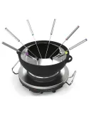 Fondue et réchaud électrique - un 2 en 1 bien pratique - service à fondue pour 8 personnes et table de cuisson d'appoint - foyer ø 155 mm et caquelon d'1,2 litre en fonte massive émaillée pour une diffusion maximale de la température - thermostat réglable 6 positions avec voyant de mise en chauffe - repères de niveaux mini et maxi gravés dans la cuve - fourchettes inox avec repère couleur - poignées de transport en acier massif chromé- cordon alimentation de 2 mètres - livrés avec livret idées recettes fondues - coloris noir - puissance 1000 w - garantie 2 ans.