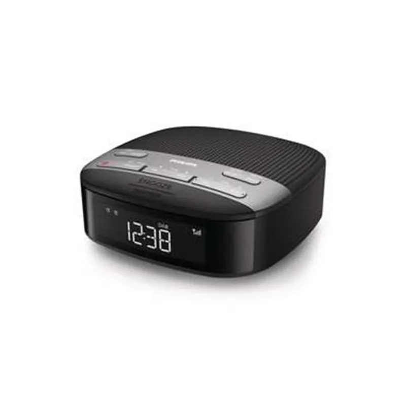 Radio-réveil DAB+/FM - Commencez la journée en écoutant vos stations préférées ! Ce radio-réveil DAB+ et FM vous offre le choix entre plusieurs centaines de stations au son limpide. Vous écoutez la radio le soir ? Grâce à la fonction d'arrêt programmé, elle ne fonctionnera pas toute la nuit - Double alarme - Afficheur LED blanc avec luminosité réglable - 20 mémoires - Réveil par radio ou buzzer - Fonction Répétition d'alarme (Snooze) - Arrêt programmé: 15/30/60/90/120 min - Synchronisation automatique de l'heure - Batterie de secours en cas de panne de courant - Finition noir.