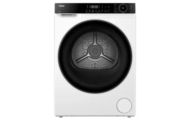Sèche-linge pompe à chaleur Haier HD90-D357U1-FR - Avec sa capacité de 9 kg et son séchage électronique, il répond parfaitement aux besoins des familles nombreuses - Ses 15 programmes couvrent tous les textiles avec des options adaptées comme Délicats, Couette, Serviettes ou Laine, complétés par I-Refresh qui défroisse et désodorise les vêtements en douceur - La fonction Hygiène à haute température garantit une propreté optimale pour le linge de lit ou les vêtements de bébé et de sport - Grâce à l’application hOn, profitez de plus de 60 programmes supplémentaires, de conseils personnalisés et de notifications d’entretien - Ce modèle intègre des fonctions pratiques comme le départ différé jusqu’à 24h, la sélection du degré de séchage, le contrôle d’humidité et l’anti-froissage qui limite les plis en fin de cycle - Le filtre 3 en 1, placé à l’intérieur du hublot, collecte facilement les peluches et simplifie l’entretien - Son tambour inox de 118 litres assure robustesse et soin du linge - La sécurité est renforcée avec verrouillage de porte, indicateur de bac plein et alerte nettoyage du filtre - Design moderne avec hublot vitré noir et bandeau LED élégant - Dimensions : 84,5 x 59,5 x 68,5 cm - Coloris blanc.