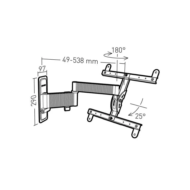 Support mural 4 axes EXO 400TW3 - Orientation 180° et inclinaison -25° - Pour écran de 30 à 55'' (76 à 140 cm) - Compatible VESA L 200 > H 400 - Distance maxi par rapport au mur : 538 mm - Système breveté de rondelles excentriques pour corriger les erreurs de perçage - Système de micro réglage breveté pour assurer une parfaite horizontalité de l'écran - Bras en aluminium texturé anodisé, couleur titane - Platine murale et écran en acier, peinture époxy - Compatibles écrans plats et écrans incurvés (visserie et entretoises fournies) - Garanti à vie.